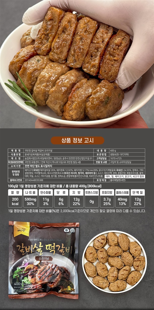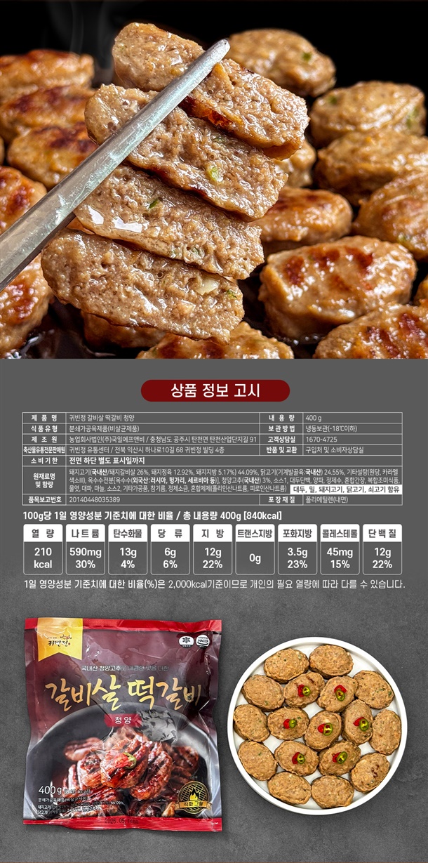 | 1. 품목 또는 명칭 | 국산 갈비살 떡갈비 |