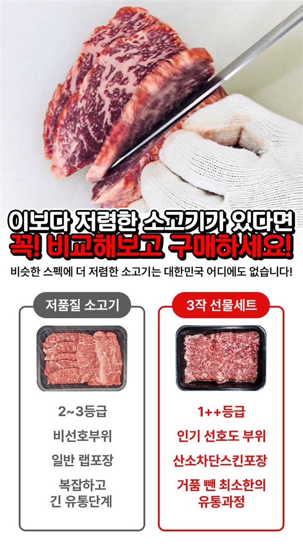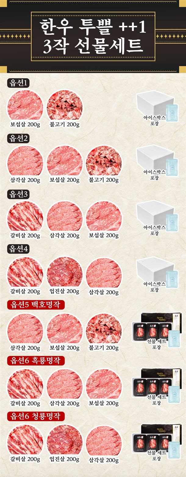 | 1. 품목 또는 명칭 | 한우 투뿔 3작 선물세트 |