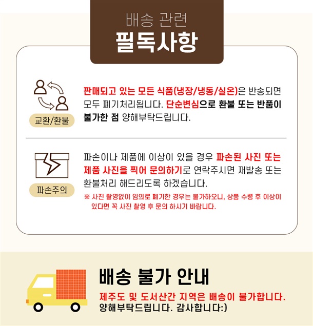 · 배송비 : 3,500원(6개 마다 기본배송비 반복 부과)