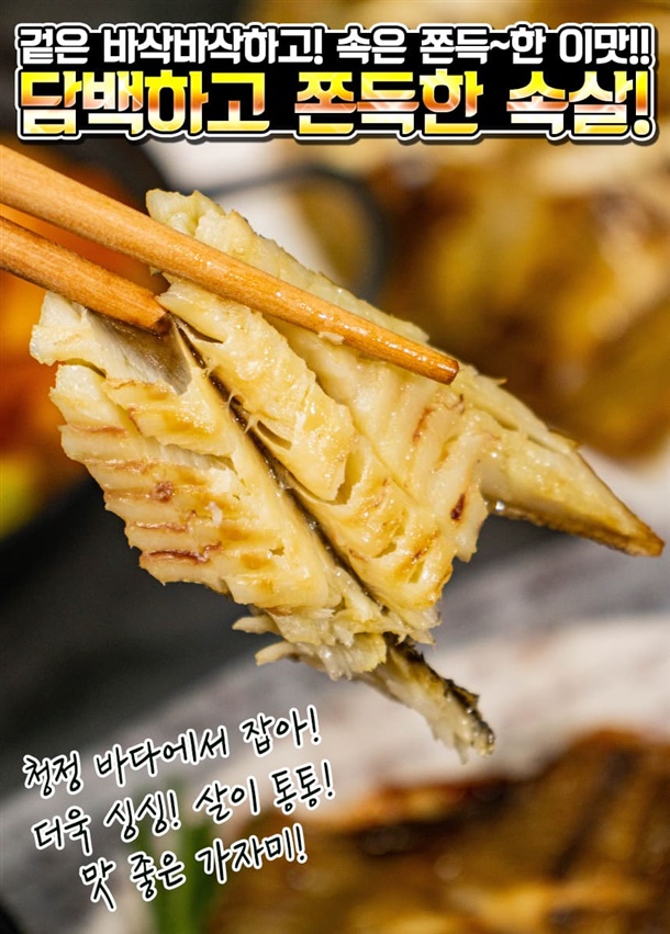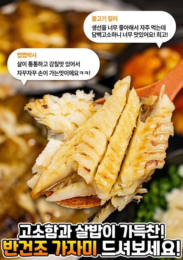 바닷바람이 잘 통하는 덕장에서 꾸덕뚜덕하게 말라서 더 고소합니다.
