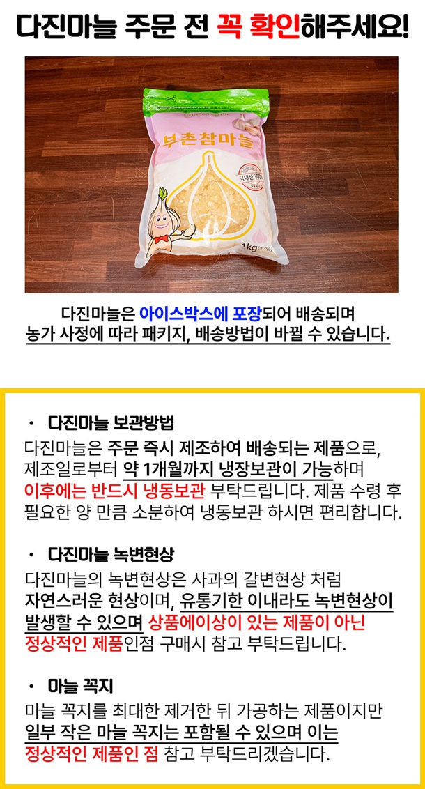 | 7. 상품구성 | 다진마늘 100% |
