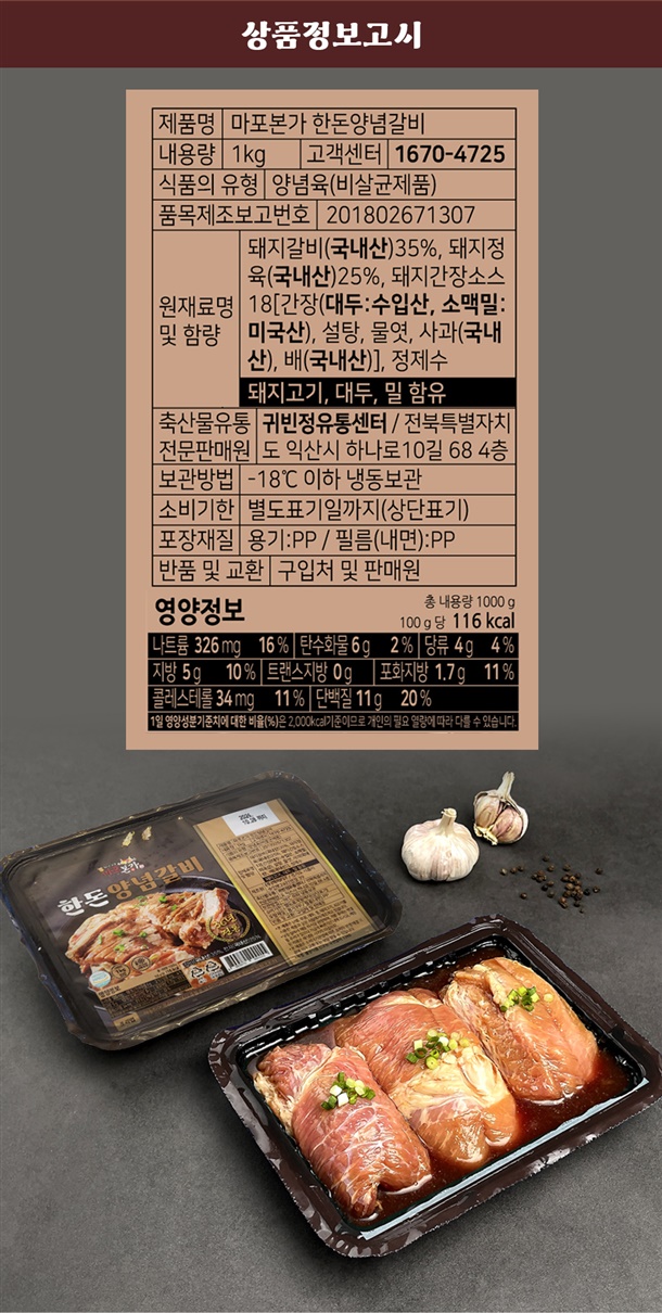 | 7. 상품구성 | 양념갈비 100% |