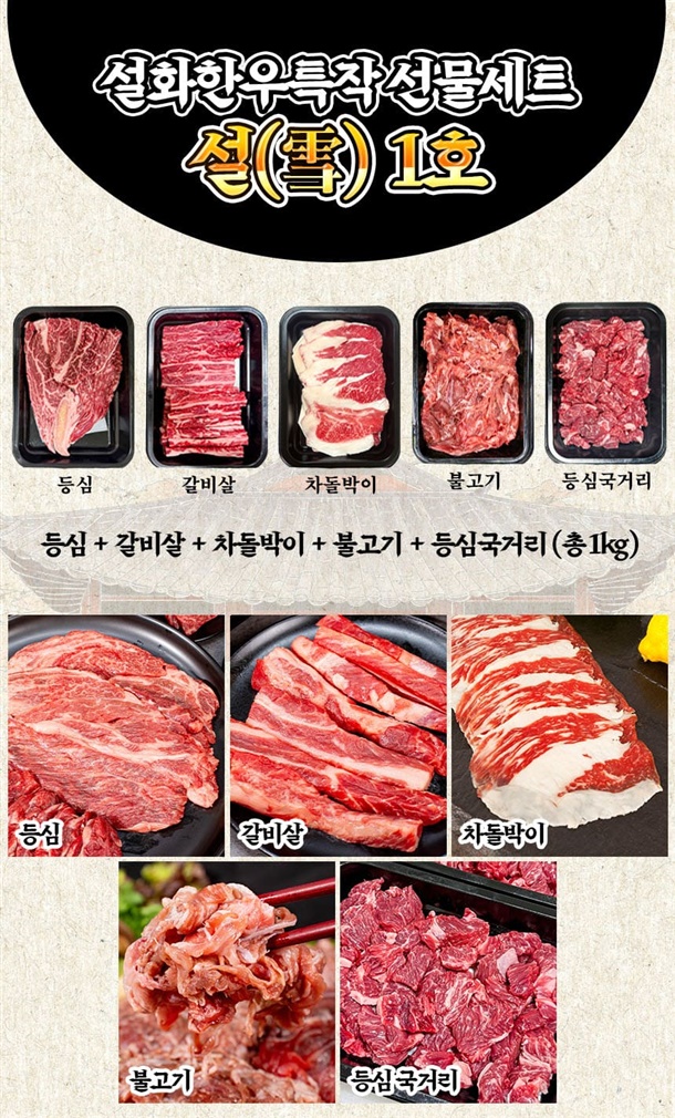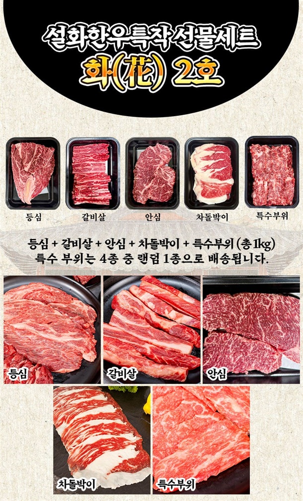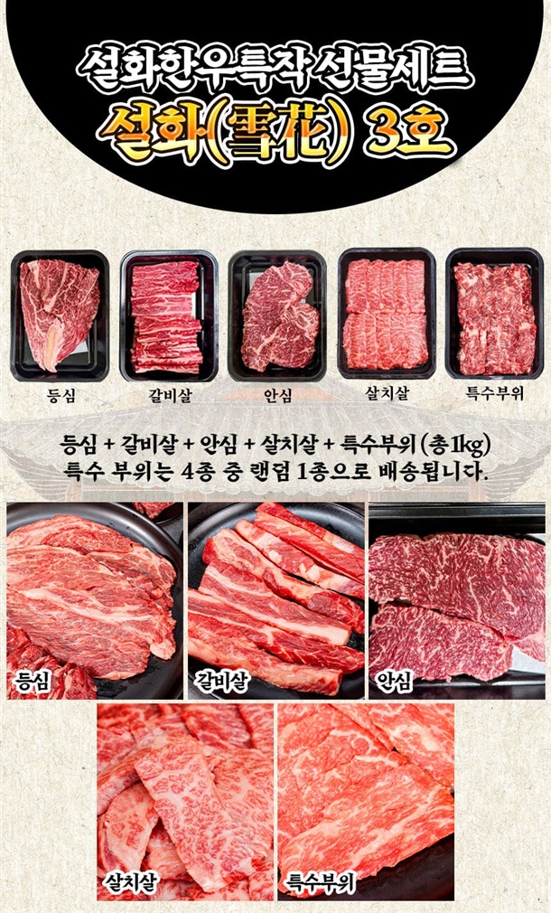 | 1. 품목 또는 명칭 | 설화 원뿔 한우 특작 프리미엄 선물세트 |