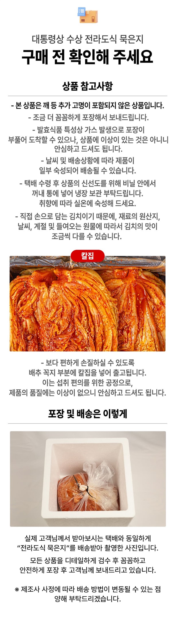 | 7. 상품구성 | 묵은지 100% |