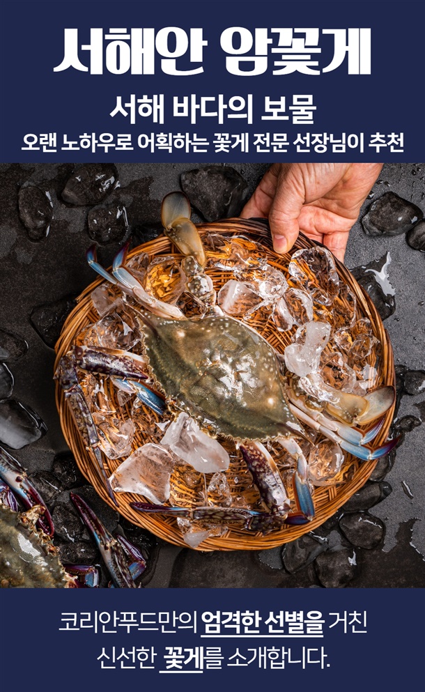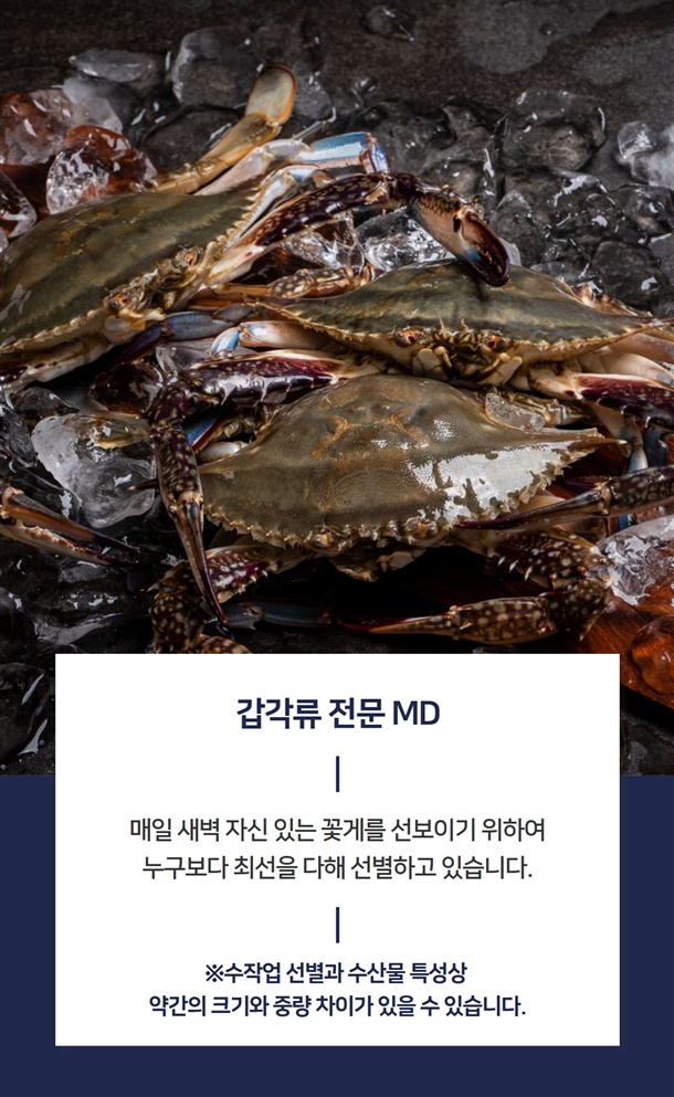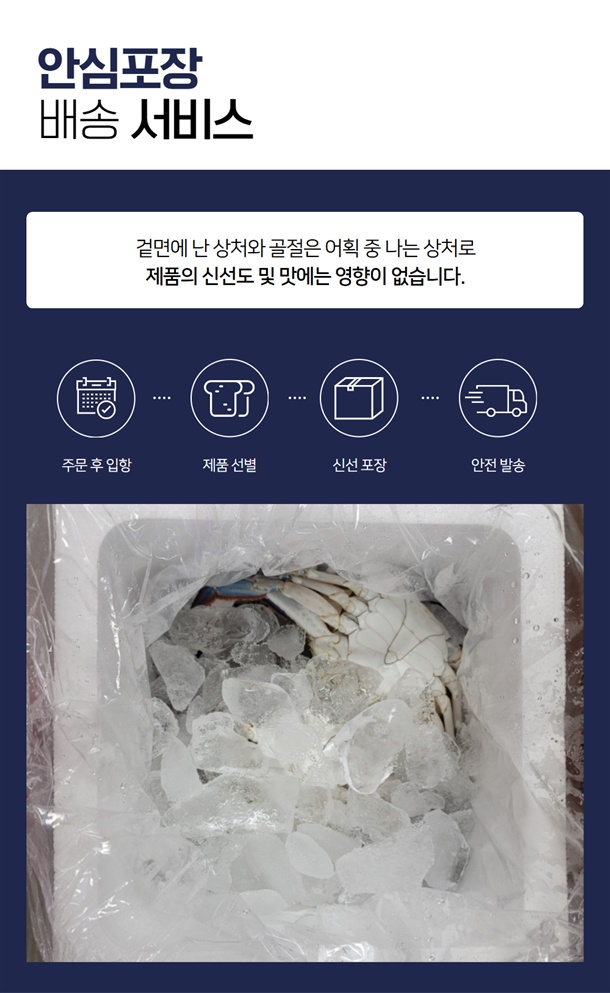 싱싱한 활 꽃게를 기절시켜 아이스박스에 담아 보내 드립니다.