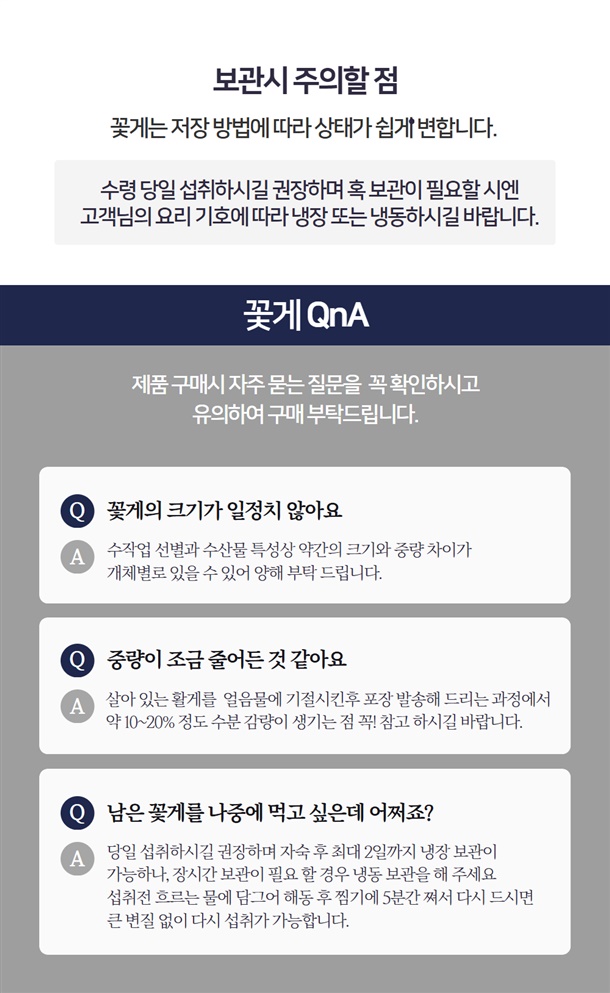 | 7. 상품구성 | 꽃게 100% |